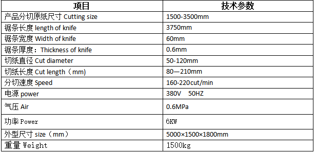 1. 主電動機采用變頻器獨立驅動; 2. 自動上紙,無需人工操(cāo)作; 3.送料電機采用市精度伺(sì)服係統,保證成品質(zhì)量; 4.設備根據原材(cái)料及成品長度自動算(suàn)出所切割(gē)成品數量; 5. 自(zì)動磨刀裝置,配金剛石(shí)砂(shā)輪,耐用高效; 6.切出的紙頭紙尾(wěi)自動分離;
