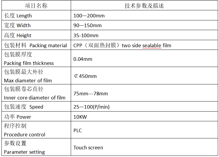 1.采用裹包、折邊、封邊的包裝形式,結構緊湊、美觀,適合於作為密封性要求不高(gāo)的紙巾 紙盒等較規則四方體物件的外(wài)包裝。 2.采用(yòng)變頻無級調速控製係統,觸摸(mō)屏及PLC控製係統。人機界麵顯示更清(qīng)晰,維護(hù)更簡便。 3.采用(yòng)自動理料輸送尾架(jià),方便與自動生(shēng)產線連接,節約勞動力成本更明顯。 4.雙變頻無級調速,包裝速度、袋長任意調節(jiē)。 5.自動化程度高、專(zhuān)業性強、生產效率(lǜ)高(gāo)、故障率低。 6.包裝範圍大,各種規格尺寸之間(jiān)可實現快速(sù)轉換(huàn)。