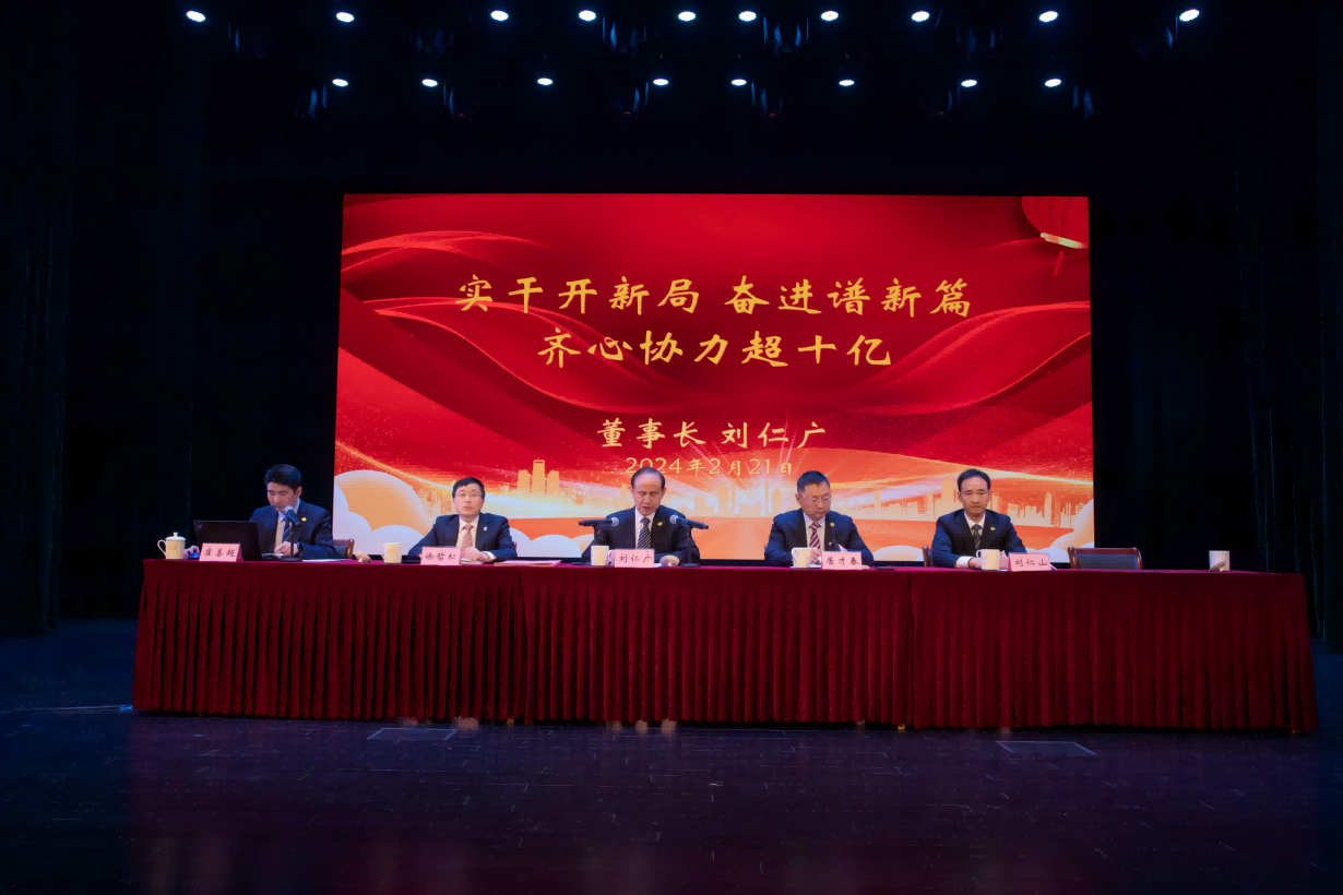 最後,劉仁廣董事長作了《實幹(gàn)開新局、奮進譜新篇,齊心(xīn)協力超十億》的工作報告,報告中他指出:藍圖已(yǐ)經繪就,正當(dāng)揚帆(fān)遠航(háng),重任在肩,更需策馬揚鞭。前行路上有風雨是常態,但我們更要堅信,路雖遠行則必至。並向全體員工發出號召,迅速行(háng)動起來,以“生龍活虎”的精神(shén)狀態,“龍騰虎躍”的(de)拚勁衝勁,勇挑重擔,勇爭一流,把我們的想法變(biàn)成行動(dòng),把我們的行動變成結果,在超十億的征(zhēng)程中再創佳績,再譜新篇,作出更大的貢獻!